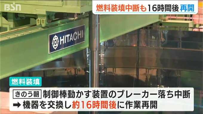 柏崎刈羽原子力発電所の作業では、燃料装填を開始した15日に装置のエラーが発生し、さらに17日の朝には制御棒を動かす装置のブレーカーが落ち、作業が中断していました。機器を交換し、トラブル発生から16時間後、17日夜遅に作業を再開しています。