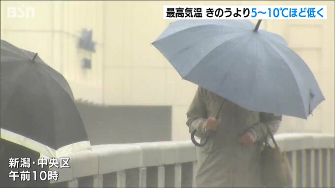 気温が上がらず“4月上旬並み” 前日から5~10℃ほど下がる所も 寒暖差に注意を 新潟県 2024年5月8日(水) 12:11 国内 8日の県内は気温が上がらず、最高気温は前日より5℃から10℃ほど下がるところがありそうです。鉛色の雲に覆われた新潟市中央区では、暖かい格好をして足早に歩く人の姿がありました。8日の県内は気圧の谷や寒気の…