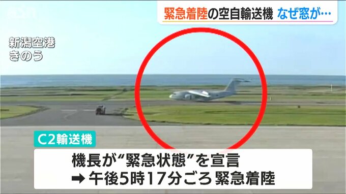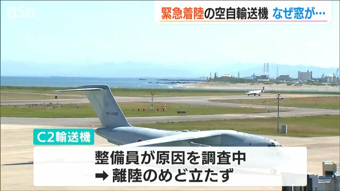 9日、上空で操縦席の窓が開くというトラブルが発生し、新潟空港に緊急着陸した自衛隊の輸送機は10日、入間基地の整備員が現地を訪れ原因を調べていましたが離陸の目途は立っていません。