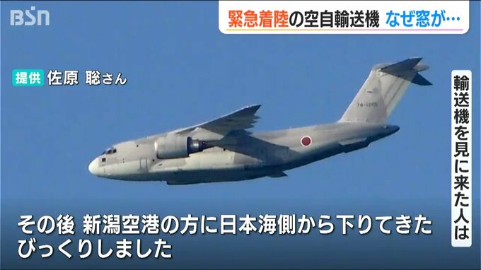 【輸送機を見に来た人は】「きのう4時45分ごろにずっと佐渡沖を飛んでいた。その後、新潟空港の方に日本海側から降りてきた。びっくりした。緊急着陸だからあってはならないことなんだけど、ちょっとうれしい」