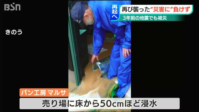 3年前に震度6強の地震に見舞われ、今回も大雨の被害に見舞われた村上市の山北地域で、度重なる災害にも負けずに再起に向けて片付け作業を行なうパン店がありました。