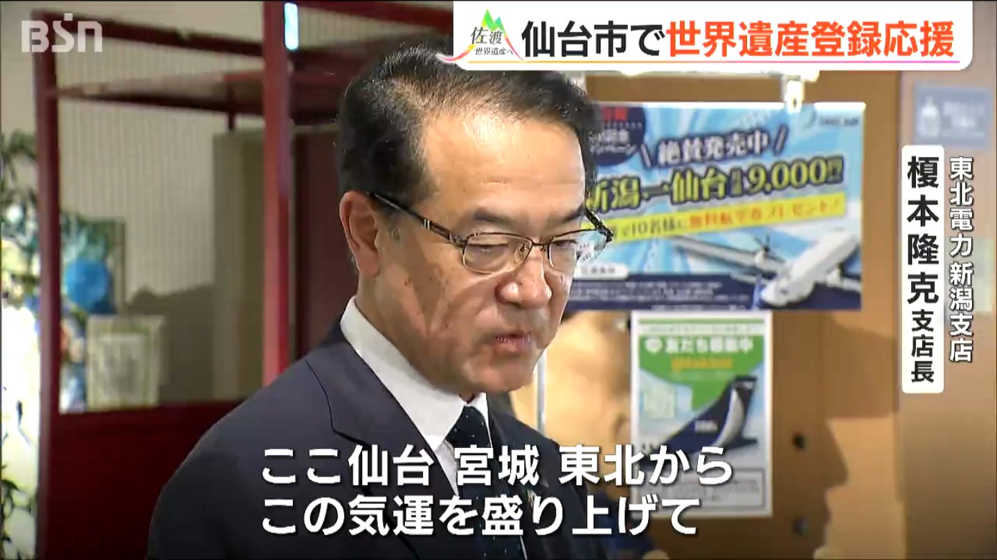 地域航空会社トキエアにより新潟との空路がつながった仙台市で「佐渡島の金山」の世界遺産登録を応援しようというイベントが始まりました。