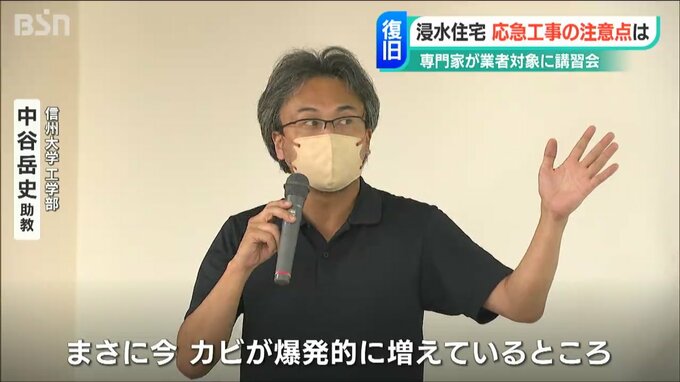この講習会は関川村の建築業者らを対象に村が開催したもので、住宅の応急工事に詳しい専門家が講師を務めました。