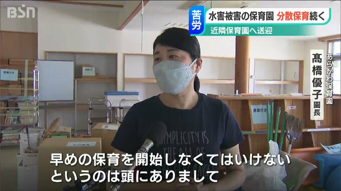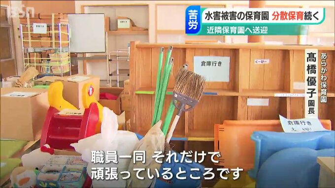 水害で建物に大きな被害が出た新潟県村上市坂町の保育園では、子どもたちを複数のグループに分けてほかの保育園で受け入れてもらう分散状態が、いまだに続いています。
