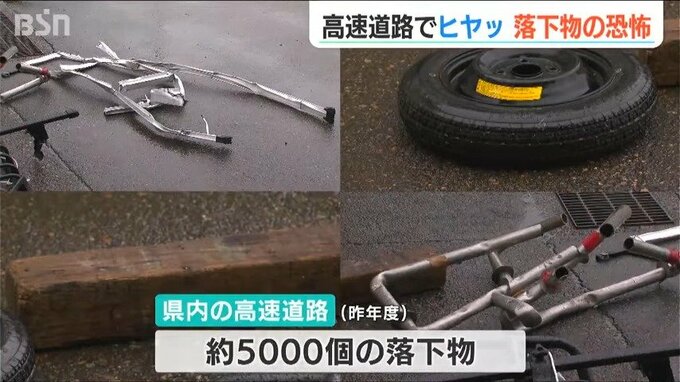 新潟県内の高速道路では、こうした落下物が2023年度にはおよそ5000個見つかっていて、石田さんら交通管理隊の皆さんがこれらの回収にあたります。