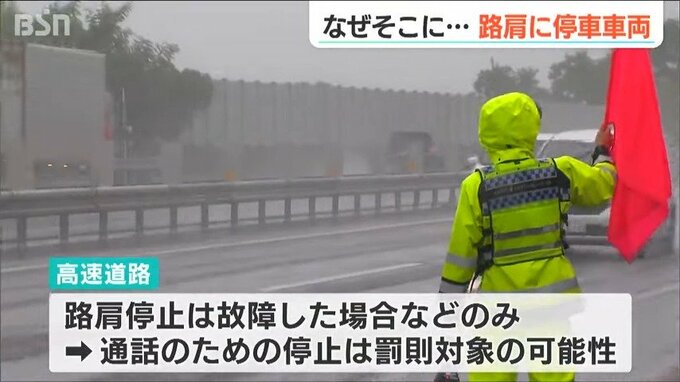 運転手は、急用で携帯電話を使うために路肩に止まったそうです。
