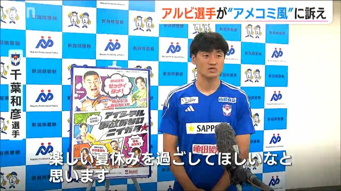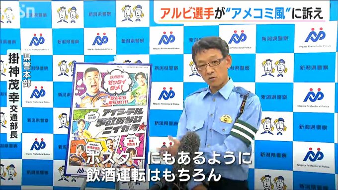 飲酒運転の根絶を目指して新潟県警などがアルビレックス新潟の選手を起用し作成したポスターが17日、お披露目されました。