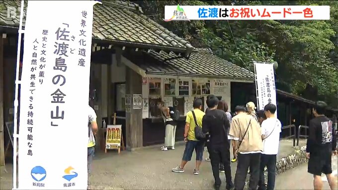 27日に「佐渡島の金山」が世界文化遺産に登録されたことを受け、佐渡市はお祝いムード一色となっています。