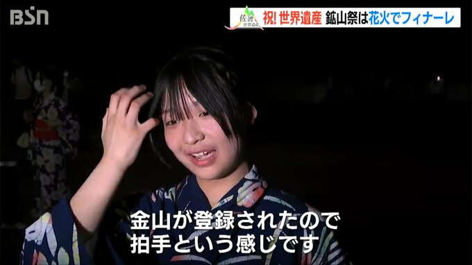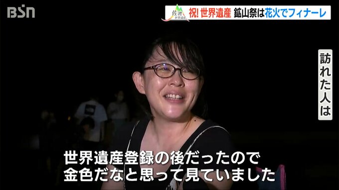 世界文化遺産の登録に沸く新潟県 佐渡市では28日夜、金山の繁栄を願う鉱山祭の花火大会が開かれ、多くの人でにぎわいました。