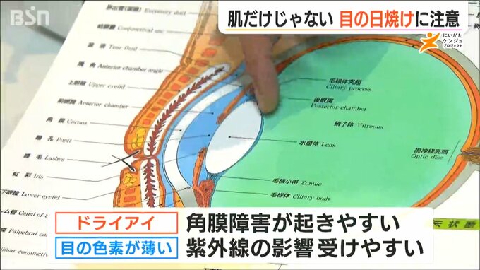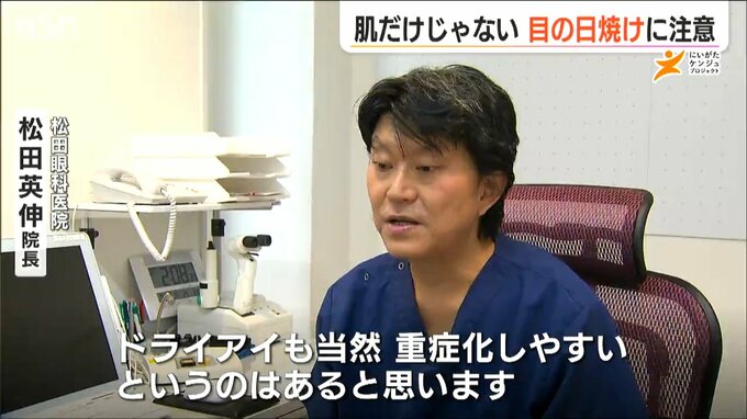 ドライアイの人は角膜障害が起きやすく、また目の色素が薄い人も、紫外線の影響を受けやすいということです。
