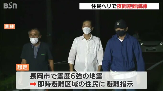 また、道路が寸断され、一部の住民は夜間に空路で避難することになったという想定も加えられました。訓練には刈羽村の住民12人や県職員らが参加し、懐中電灯を手に真っ暗な道を歩き、ヘリに乗り込みました。