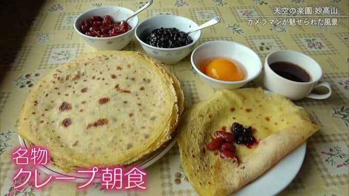 植木さんが海外の遠征先でヒントを得たクレープの朝食は、黒沢池ヒュッテの名物になっています。
