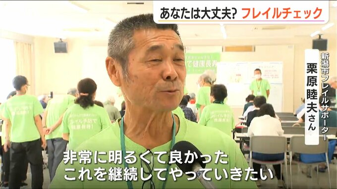 【新潟市フレイルサポーター 栗原睦夫さん】「こういうことをやることによって自分の体の悪いところが分かるわけだから、非常に明るくて良かった。これを継続してやっていきたい」
