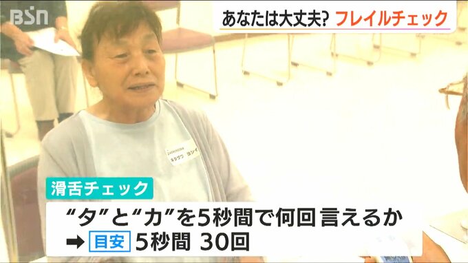 9日、参加したのは、北区に住む65歳以上の男女およそ30人。記入したチェックシートをもとに、4つのブースでフレイルチェックをしていきます。