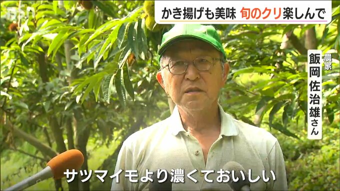 【飯岡佐治雄さん】「クリのかき揚げを作ってもらって食べた感じは、サツマイモより濃くておいしい。皆さんもいろいろことを考てえ作ってやってもらえれば」
