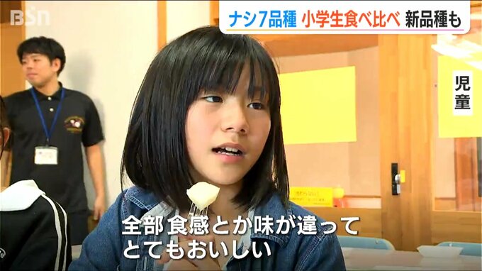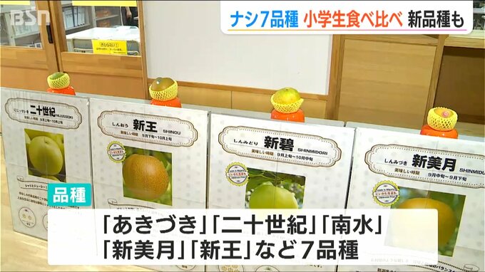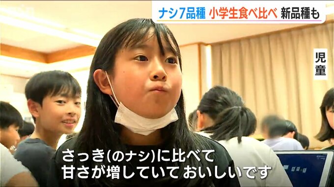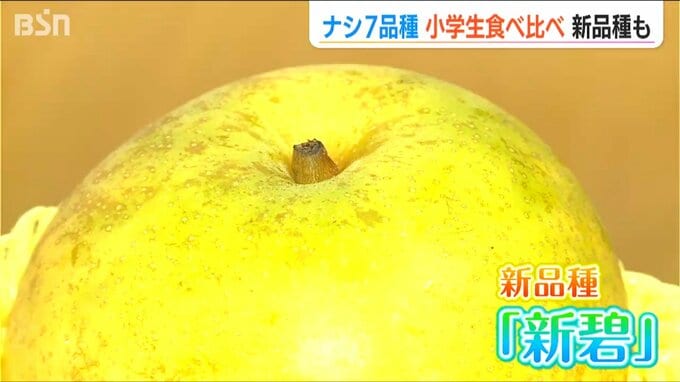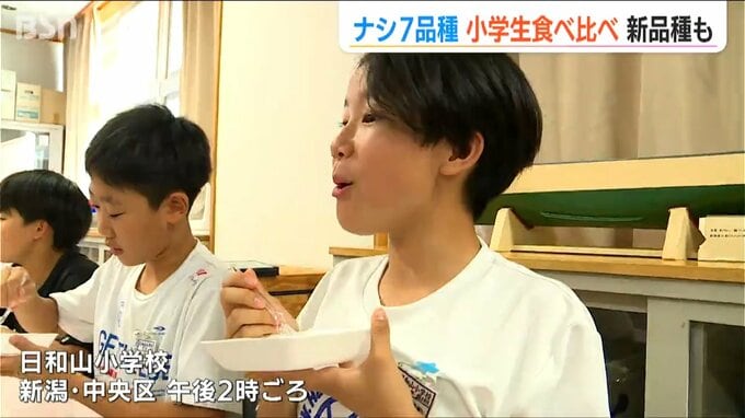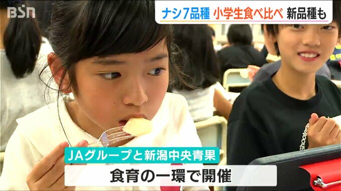 今が旬のナシを新潟市の小学生が7種類食べ比べをしました。なかなかお目にかかれない新品種もあったそうです。