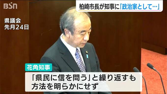 柏崎刈羽原発7号機の再稼働について「要請があれば応じる」と述べている柏崎市の桜井雅浩市長は、こうした知事の姿勢に対し「考えを明らかにすべき時期だ」と促しました。