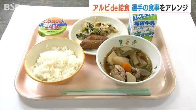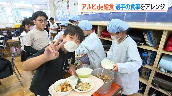 朝食を取らない、肥満の児童が多い…などの課題に対し、食や健康へ興味を持ってもらおうと、アルビレックス新潟と新潟市とが企画した『アルビde食育・健康づくり』の一環でできた『アルビde給食』です。