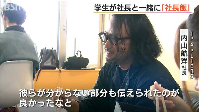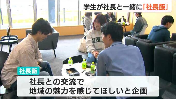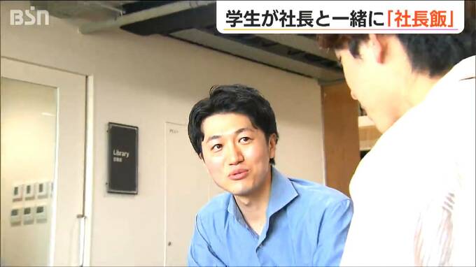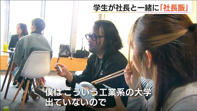 【記者リポート】「大学のお昼休みの時間です。学生たちがランチをしている中に社長の姿が…」