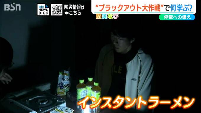 明かりを確保した2人は夕食の準備です。停電すると調理器具はほとんど使えなくなります。
