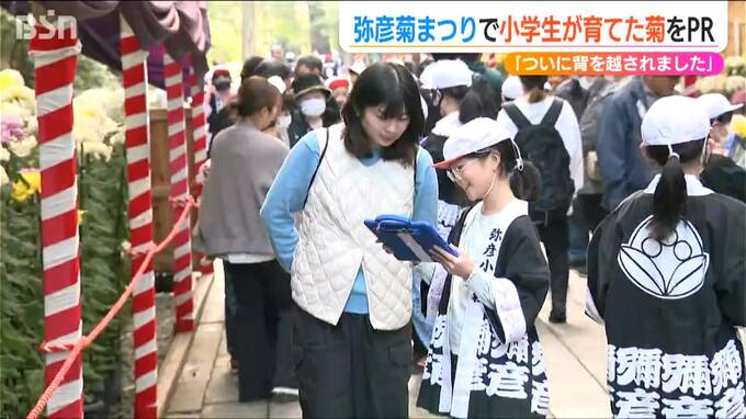 「ついに背を越されました!」6月から育ててきた自慢の“作品”を児童が自ら案内『弥彦菊まつり』新潟県 2024年11月13日(水) 20:05 国内 話題・グルメ 「夏休みが終わって、菊がすごく伸びていました。もう少しで背を越されてしまいます。ついに背を越されました!」新潟県弥彦村の「彌彦神社」で毎年11月1日から開かれる『弥彦菊まつり』の会場で、村立弥彦小学校4…
