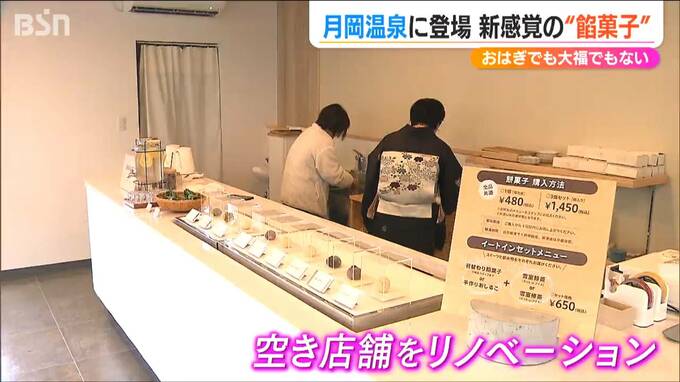 その月岡温泉に、新しい餡菓子の専門店『月岡餡』が14日からオープン。