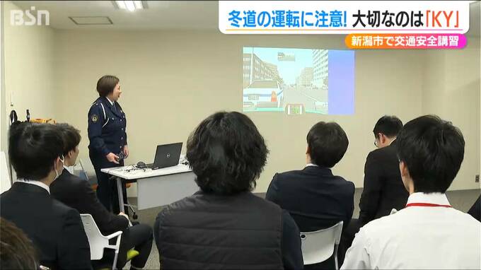 新潟市で19日、中央区にある企業の社員を対象に、警察による『冬道の交通安全講習』が開かれました。