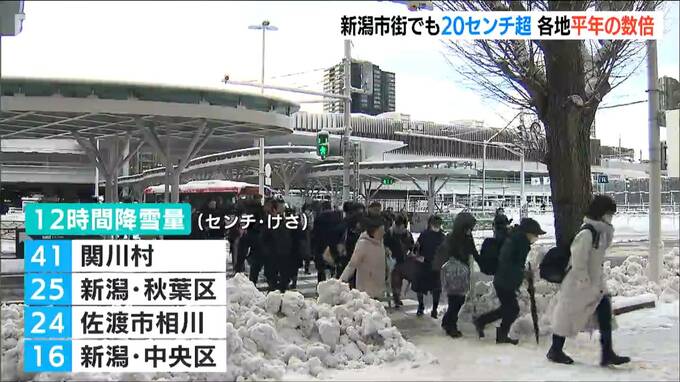 積雪も新潟市秋葉区で37センチ、中央区で20センチなど、平地でも各地で平年の数倍を記録しています。