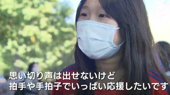 【白石結月さん】「アルビ大好きです。もうちょっとでJ1行くので、思い切り声は出せないけど、拍手や手拍子でいっぱい応援したいです」