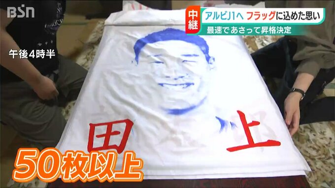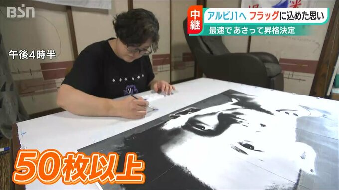 アルビの試合といえば、サポーターの熱い応援が有名ですよね。応援に欠かせないのが、サポーターが両手で持って応援する「ゲートフラッグ」、通称「ゲーフラ」です。「ゲーフラ」を作る女性に話を聞きました。