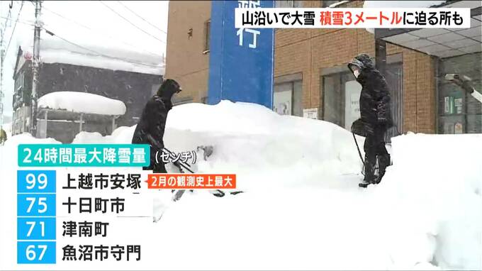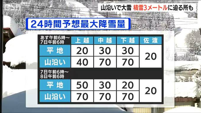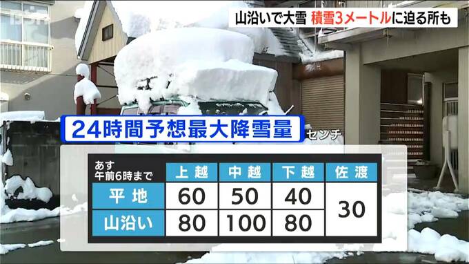 他にも十日町市で24時間に75センチ、津南町で71センチの雪が降るなど、山沿いを中心に大雪となっています。
