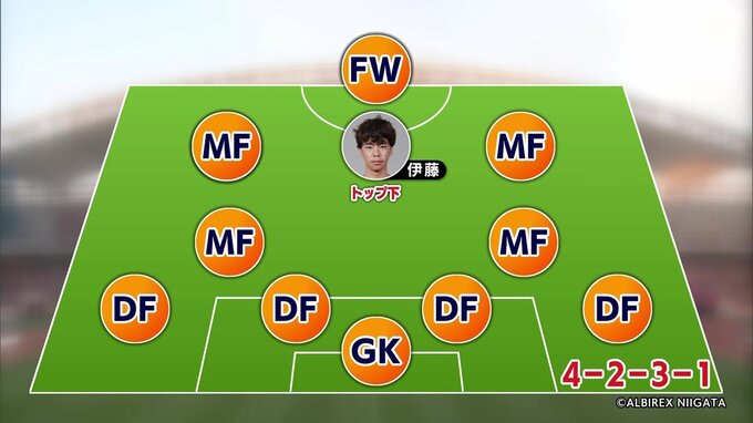 アルビレックス新潟には、伊藤選手と同じ「トップ下」のポジションにMF高木善朗選手がいます。シーズン序盤はその高木選手と入れ替わるようにプレーすることが多かった伊藤選手。