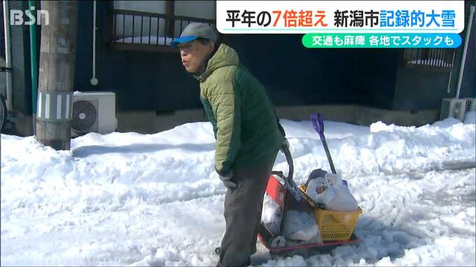 「新潟市中央区のこちらの道路は除雪されていて問題なく車が走れていますが、一本奥の住宅街に入ると、まだ雪が残っていて、歩行者の方も歩きづらそうな状況です」