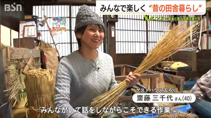 この日、新潟県五泉市のゲストハウス・五ろりの齋藤三千代さんは、“米俵”をつくっていました。