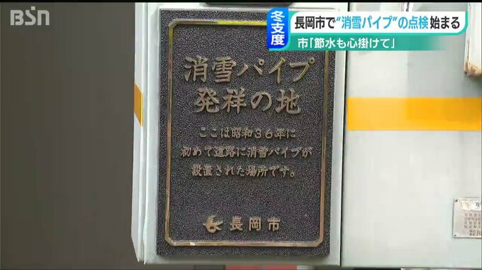冬を迎える準備が始まっています。雪が降っても道路を安全に通行できるように道路上の雪を溶かす消雪パイプの点検作業が長岡市で始まりました。