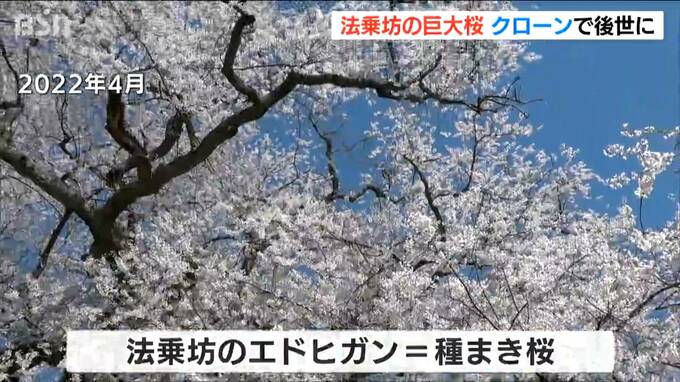 2022年の大雪などで枝が折れ、幹にも亀裂が入りましたが、2年前に枝を採取し、クローン技術で育てた苗木が新たに植えられました。
