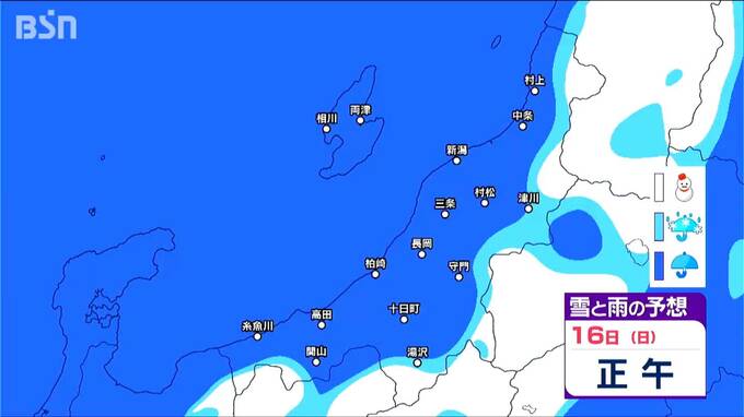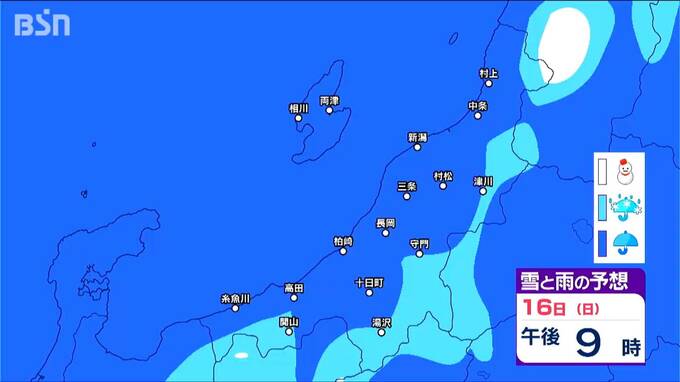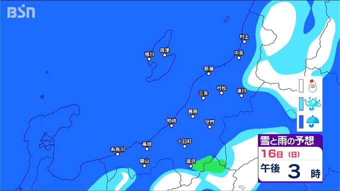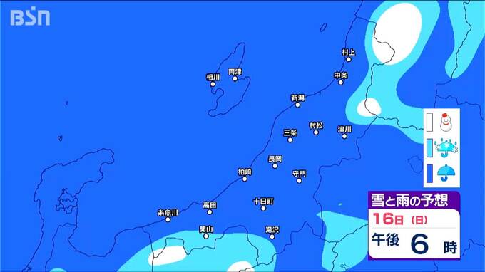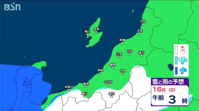 15日からは雪?いつ どこで降る?? 新潟県内は山沿い中心【3時間ごとの雪と雨の予想シミュレーション 17日迄】 2025年3月14日(金) 19:13 国内 天気 16日 3時間ごとの『雪と雨の予想シミュレーション図』