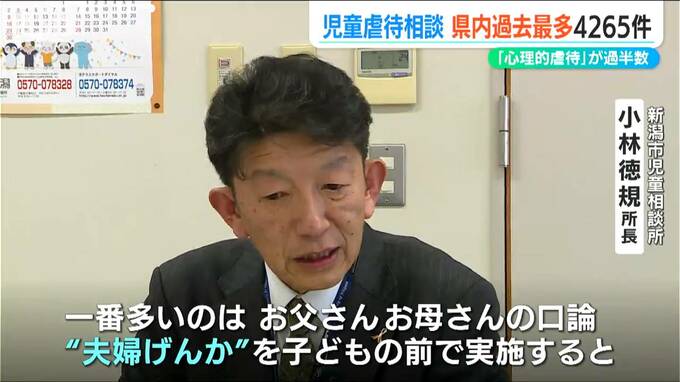【新潟市 児童相談所 小林徳規 所長】「一番多いのはお父さん、お母さんの口論、いわゆる夫婦喧嘩を子どもの前で実施すると、それは子どもに対する心理的虐待に繋がっていくものとして発生する」