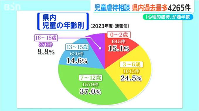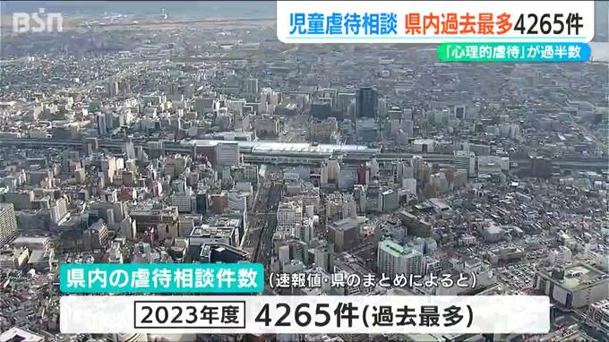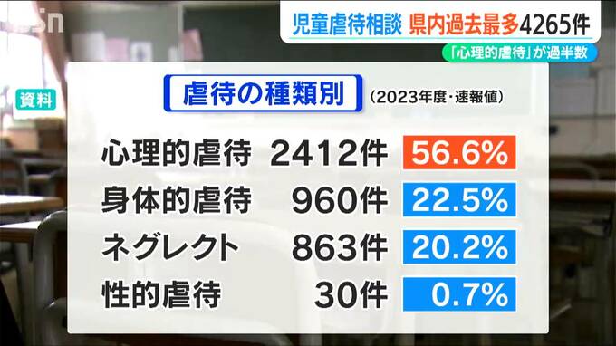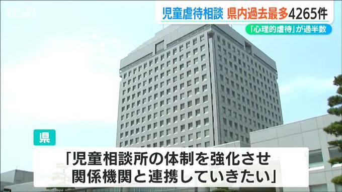 県のまとめによりますと、2023年度に県内の児童相談所で児童虐待の相談を受けて対応した件数は4265件でした。2021年度から3年連続で増加していて過去最多となっています。