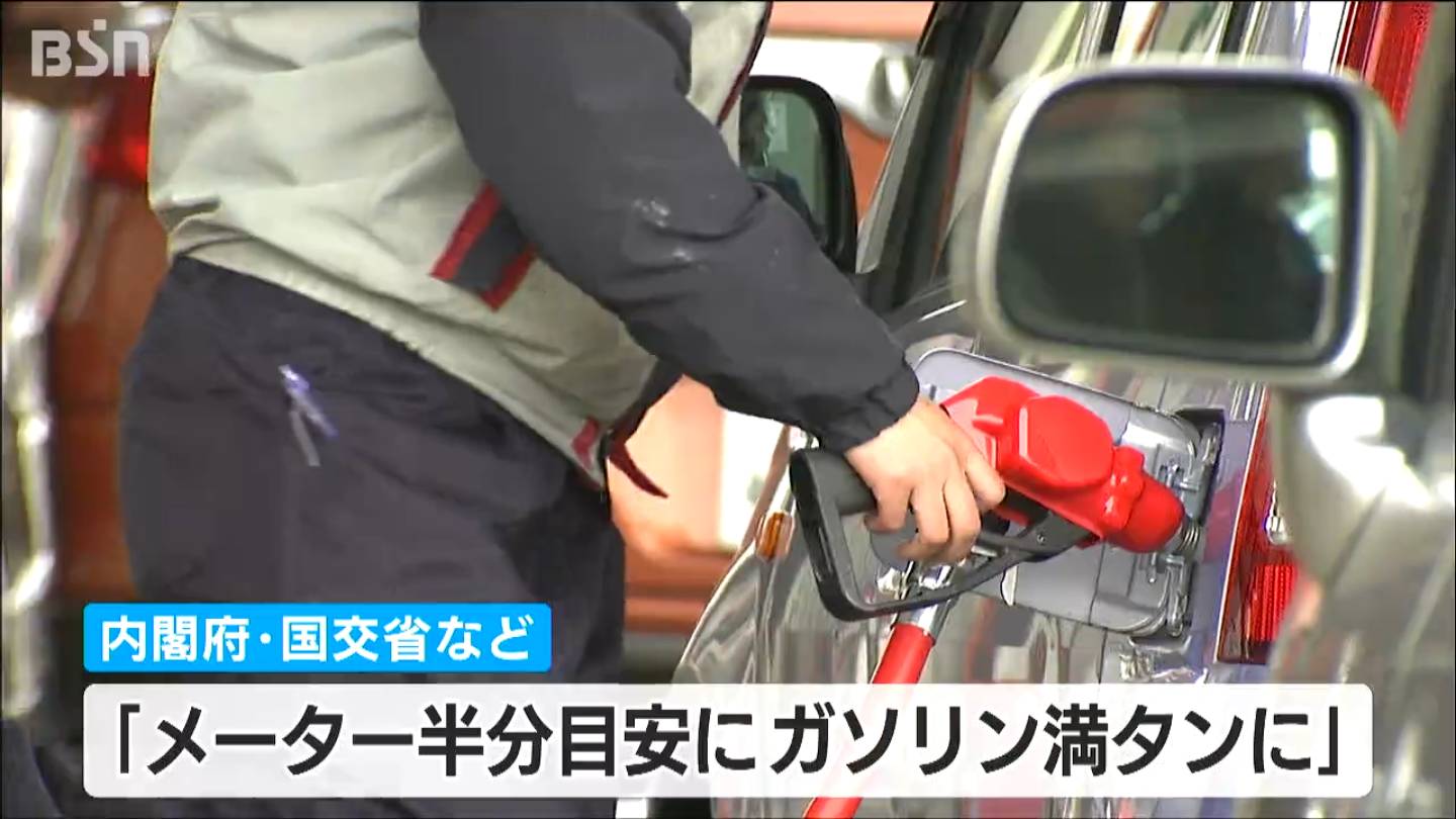 災害時に燃料がなくなり、移動ができなくなる事態を防ぐために、内閣府や国交相などはメーターが半分ぐらいになったら満タンにするよう呼び掛けています。