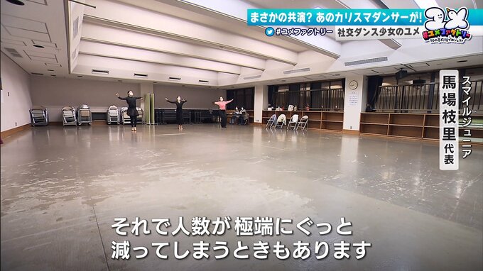 社交ダンスは通常、男女のペアで踊りますが、『スマイルジュニア』に所属しているのは女子が7人なのに対し、男子は3人。女子がペアを組めるだけ男子がいないのです。