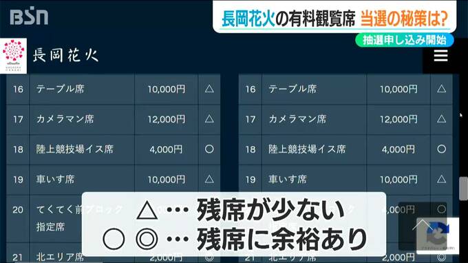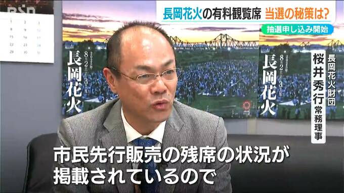 【長岡花火財団 桜井秀行 常務理事】「長岡花火財団のホームページをご覧いただきますと、市民先行販売の残席の状況が掲載されているので、そちらの方も参考としてご覧いただけるとよろしいかと思います」