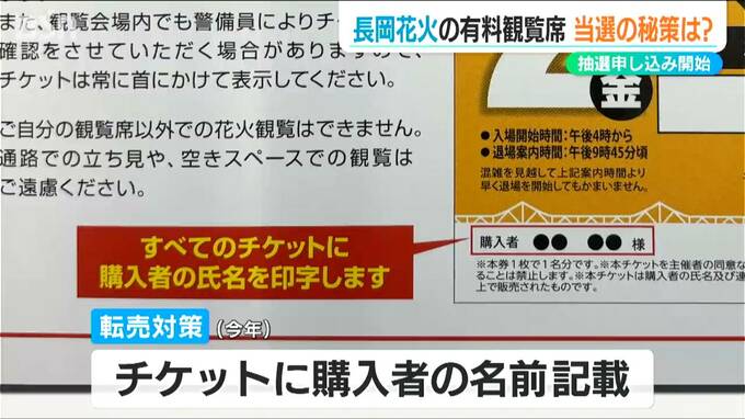 【長岡花火財団 桜井秀行 常務理事】「(多くの)大手フリマサイトでは記名式チケットは出品できないことになってります。したがって転売防止の有効な一つの方法と考えております」