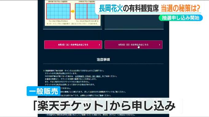 長岡市民向けの先行販売で残った分が一般販売に充てられ、申し込みはインターネット上の『楽天チケット』から受け付けます。