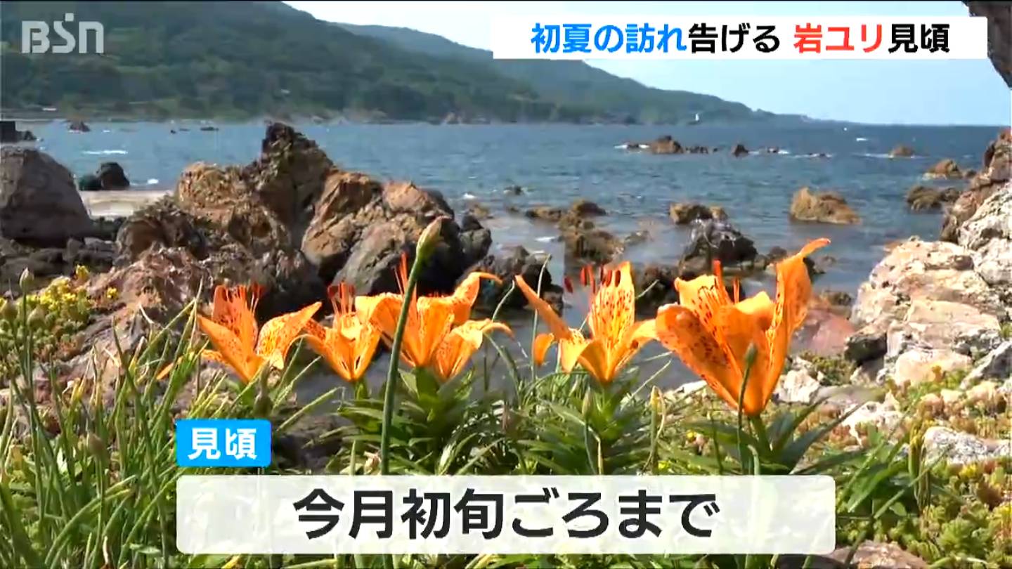 新潟県佐渡市の北片辺にある『藻浦崎公園』の岩場の海岸で、初夏の訪れを告げる岩ユリの花が見頃を迎えています。