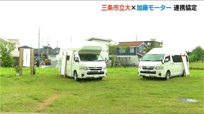 学生にモノづくりの現場で技術開発について学んでもらおうと、三条市立大学が燕市のキャンピングカーの専門メーカーと連携協定を結びました。