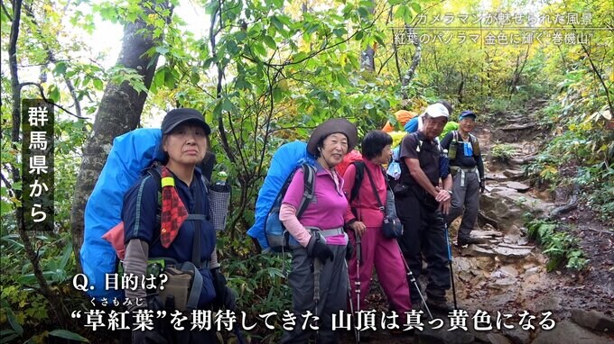 【登山者は】「高崎からです」「Q目的は?『草紅葉』を期待してきた。山頂は真っ黄色になる」