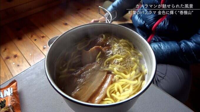 この日は避難小屋に泊まります。田村さんが夕食をつくってくれました。アツアツのラーメンを頂きます。