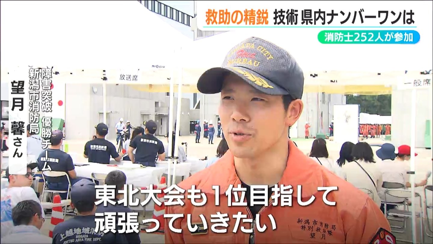 【障害突破ロープ優勝チーム 新潟市消防局 望月馨さん】「なかなかタイムが出ない時期が続いたり、チームメイトがけがをして通しができない時期もあったが、自分たちのいつも通りの一本を通して東北大会も1位目指して頑張っていきたい」