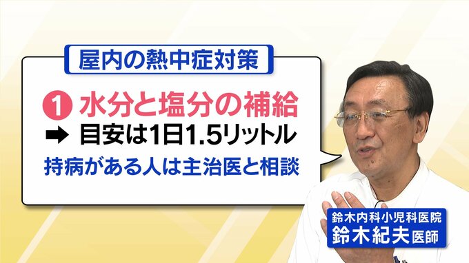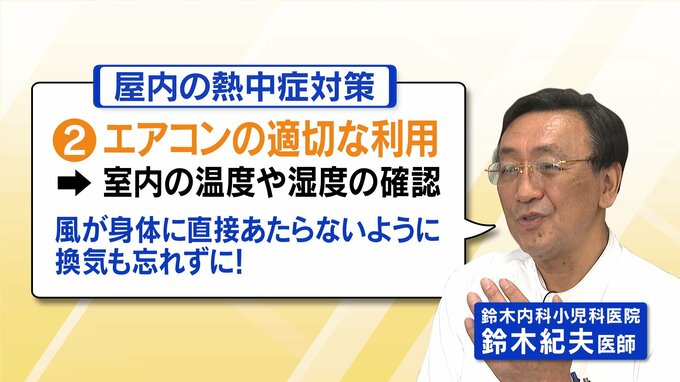 鈴木内科小児科医院の鈴木紀夫医師によりますと、屋内での熱中症対策のポイントは2つ。